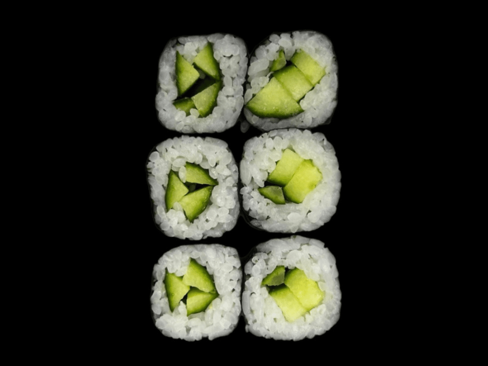 Огурец, рис, нори. Комплектацию соевого соуса и имбиря/васаби уточняйте у администратора.
