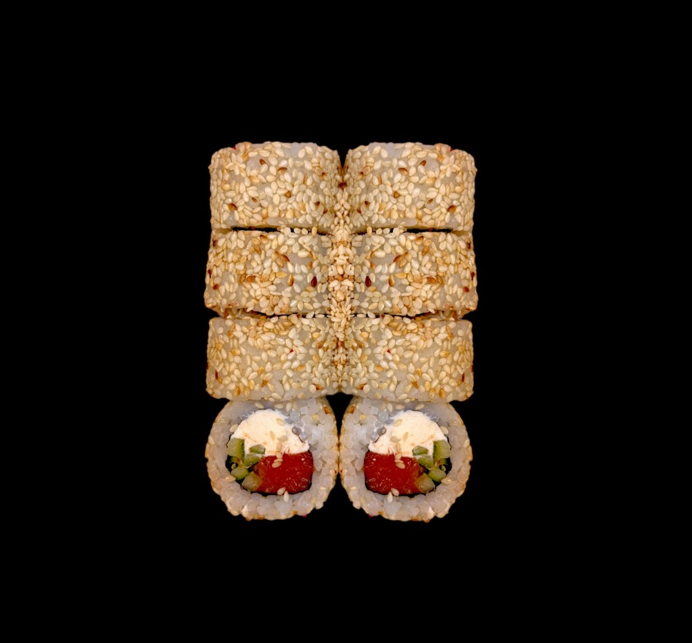 Лосось, сливочный сыр, огурец, нори, рис, кунжут