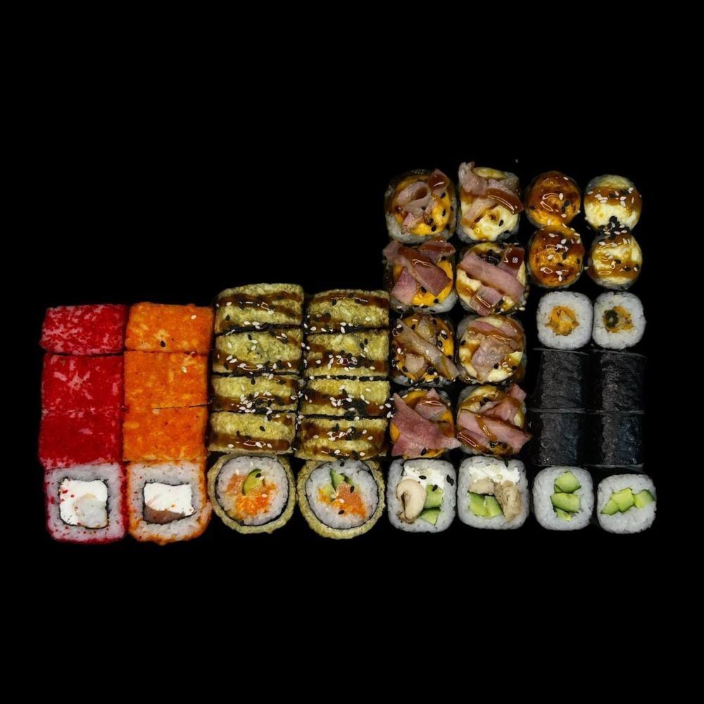 Ролл «Акита» жареный. Ролл «Колибри» запеченный. Ролл «Инь-янь» Ролл «Мак с огурцом» Ролл «Мак с мидиями» запеченный. Комплектацию соевого соуса и имбиря/васаби уточняйте у администратора.